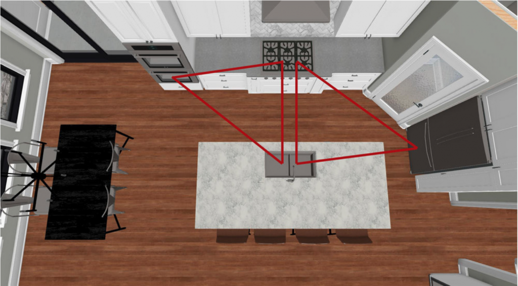 En sak att tänka på när du planerar planlösningen i ditt kök är den så kallade ”arbetstriangeln”.