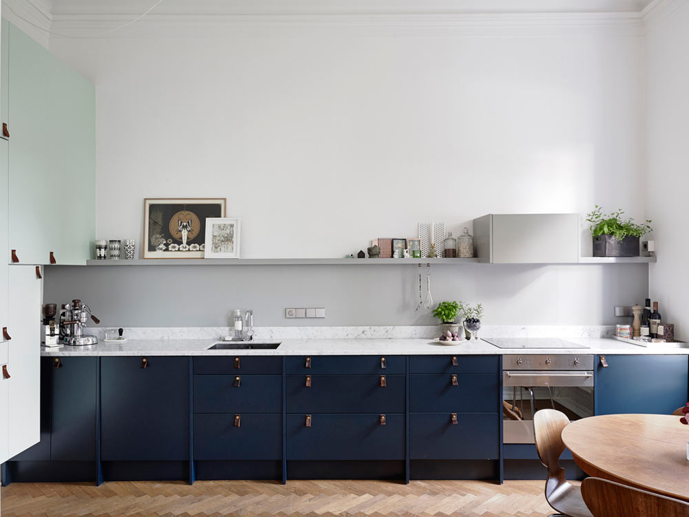 Ett typiskt skandinaviskt kök har vitt som huvudfärg och en färg som kontrasterar det vita, vanligtvis svart. Men du kan även med försiktighet använda en stark färg för att göra ett djärvt designuttalande.