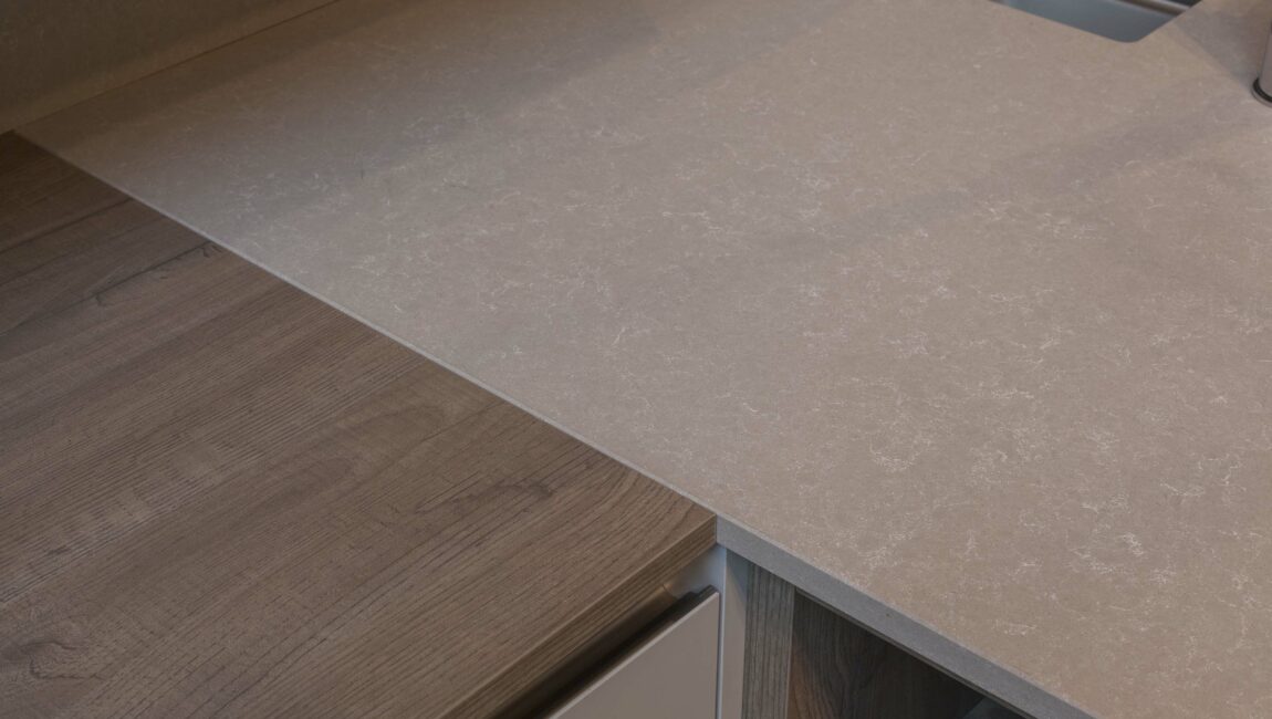 Kvarts som sådan har en yta med antibakteriella egenskaper som är lätt att underhålla. Dessutom är ytan mycket beständig mot repor, fläckar, kyla och värme – trots detta rekommenderar vi att du använder underlägg för varma kastruller och stekpannor.