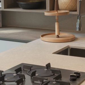 I vårt sortiment hittar du kvartsstenen Noble Arco som har en ljusbeige, nästintill krämvit bakgrund som präglas av blickfångande mönster bestående av olika former och linjer. Det är inte ett vanligt mönster utan olika former och linjer skapar ett verkligen iögonfallande bänkskivomaterial.