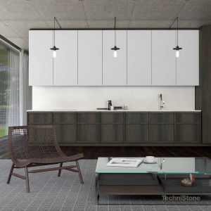 Technistone har varit verksamma sedan 1992 – de använder kvarts, granit, glasbitar och små mängder av färgpigmenter vid tillverkning. Råmaterialen sammansätts med polyesterharts med hjälp av den klassiska Brenton-tillverkningstekniken, vilket ger väldigt beständiga kvartsstenar.