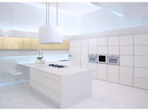 Blanco Zeus Extreme ur Silestones sortiment är en väldigt vit, nästan kritvit, kvartssort.