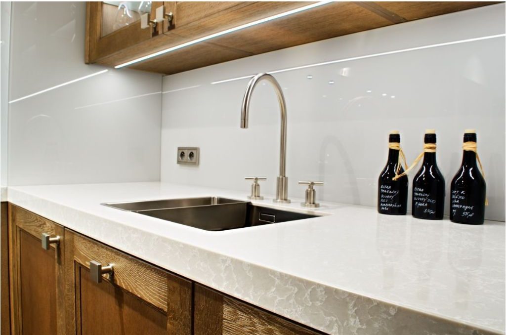 Caesarstones kvartssorter har utvecklats som ett beständigt alternativ till naturliga stenslag och har ett större beständighet mot repor och fläckar, samt är de oporösa. Ljusa kvartssorter är moderna och passar mycket bra med den skandinaviska minimalistiska stilen.