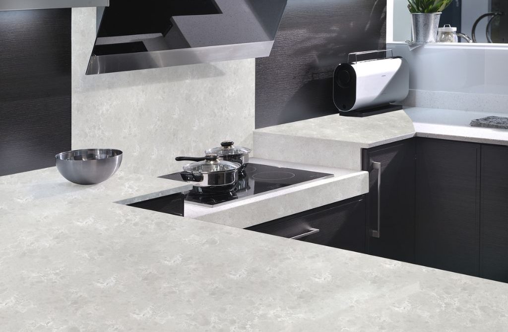 Concrete ur Andrews Granites stensortiment är en produkt av Caesarstone och har fått sitt namn tack vare sin betongaktiga färg.