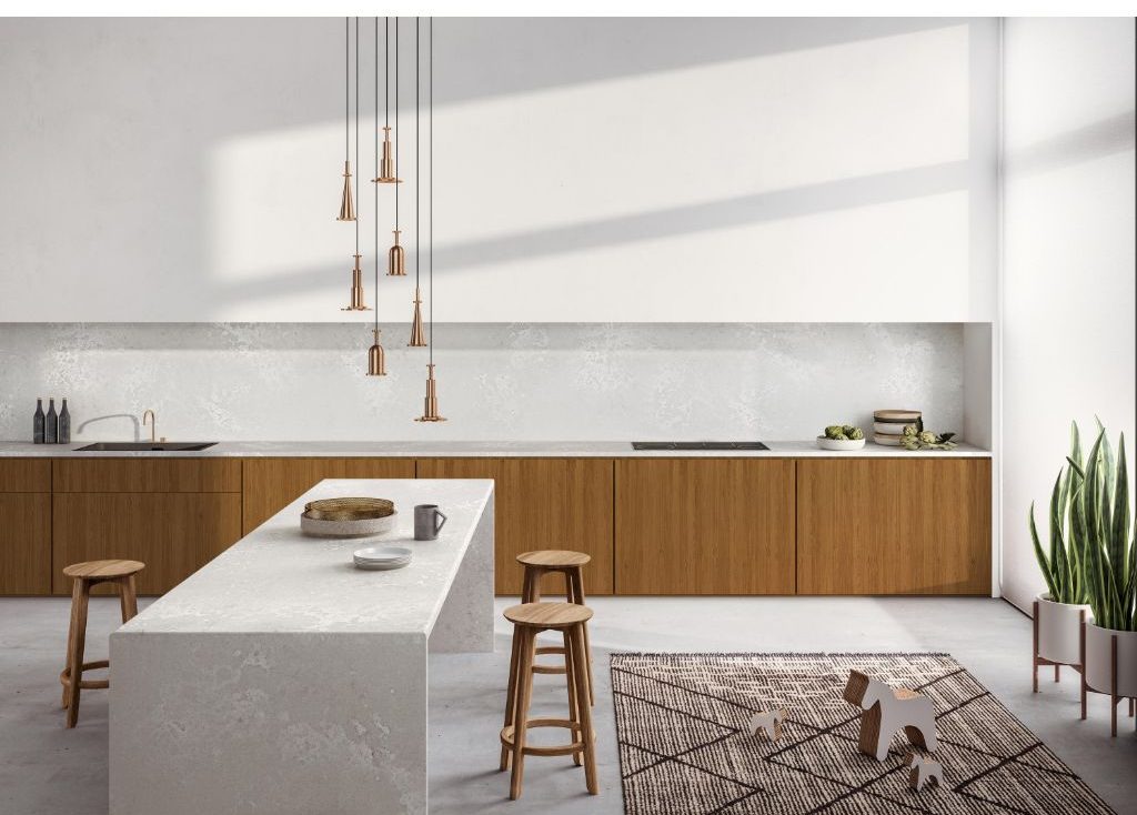 Caesarstones kvartssorter har utvecklats som ett beständigt alternativ till naturliga stenslag och har ett större beständighet mot repor och fläckar, samt är de oporösa. Ljusa kvartssorter är moderna och passar mycket bra med den skandinaviska minimalistiska stilen.