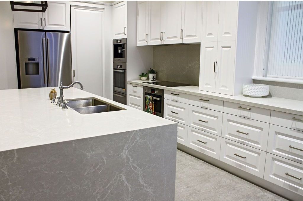 Alpine Mist av Caesarstone ur Andrews Granites sortiment är en kvartssort som har en ljusgrå grundnyans med vita ådringar – den kan pryda alla sorters rum.