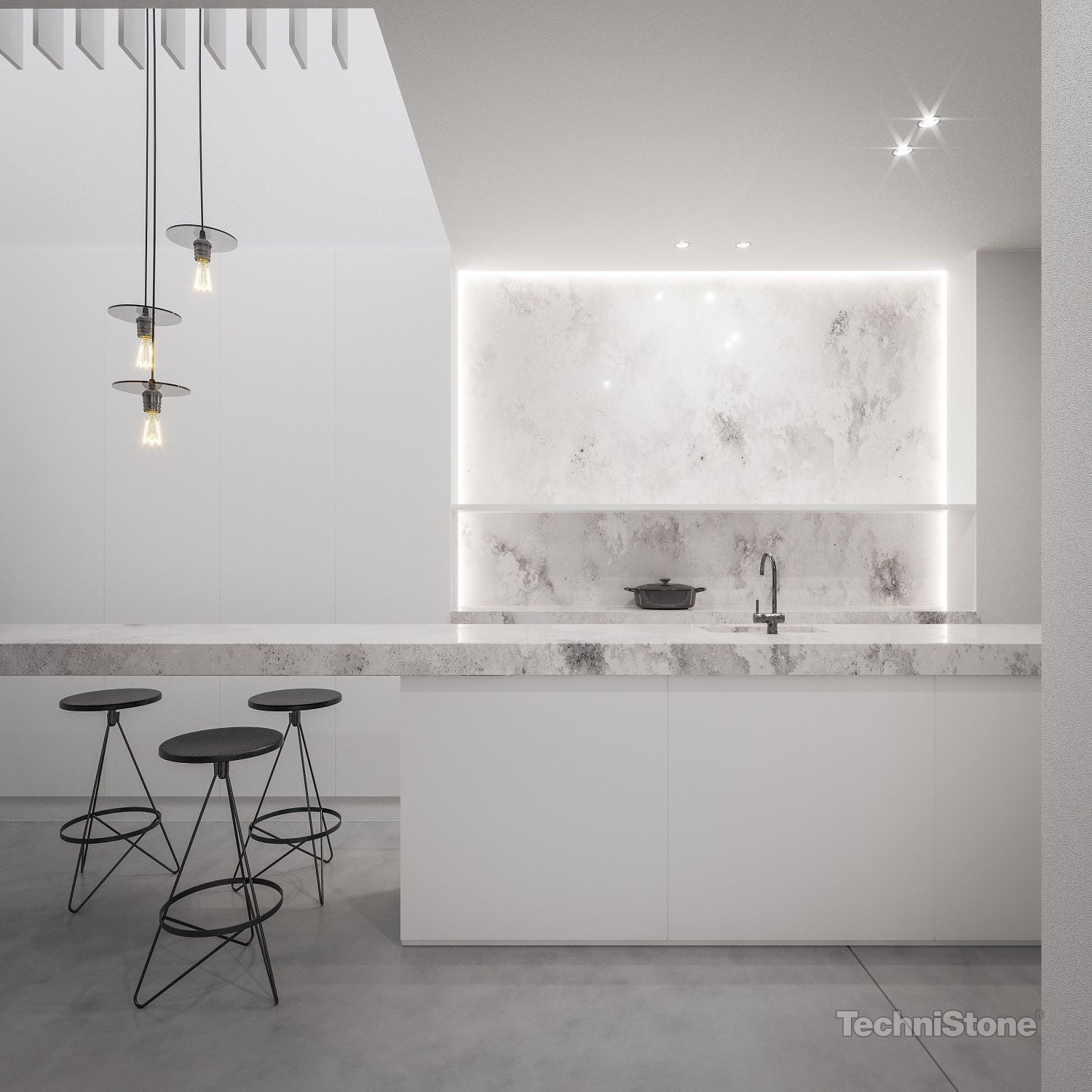 Ambiente Light är en oerhört vacker vit kvarts av Technistone med gråaktiga mönster. Ambiente Light passar utmärkt till hem som har moderna och minimalistiska drag och där dess betongaktiga utseende värderas högt.