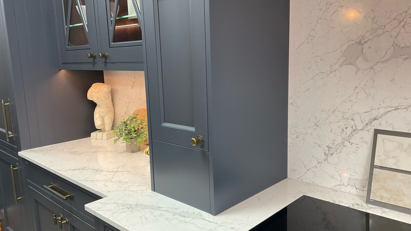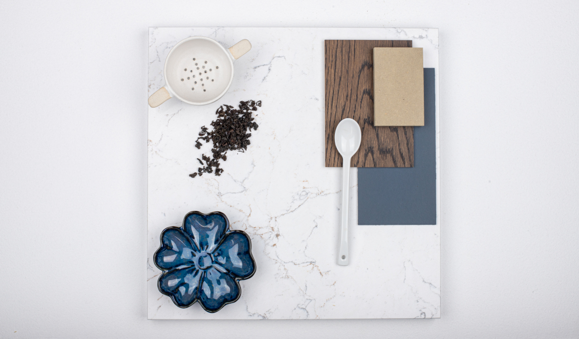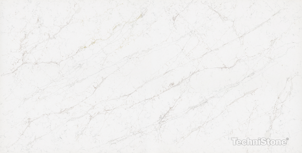 Calacatta Olympos är en slående kvartssten från Technistone som vackert kombinerar kalla grå och varma bruna accenter på en ren vit bas, vilket ger harmoni och livlighet till ditt utrymme.