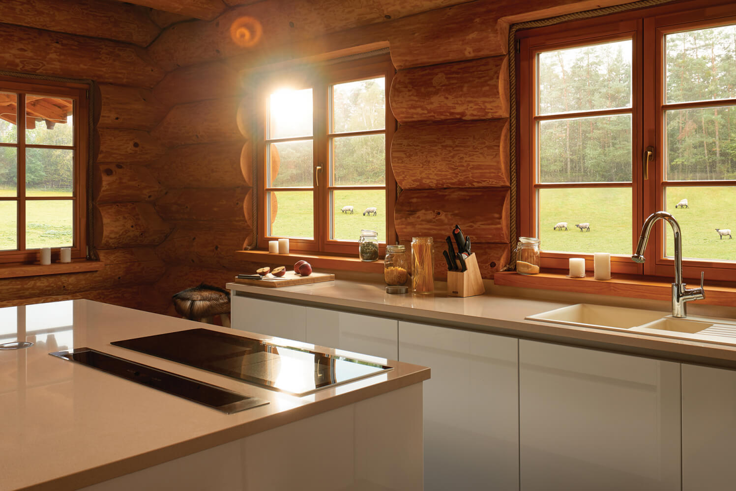 Crystal Royal från Technistone har en varm beige nyans med eleganta kristallstrukturer. Den polerade ytan lyfter inredningen i både kök och badrum.
