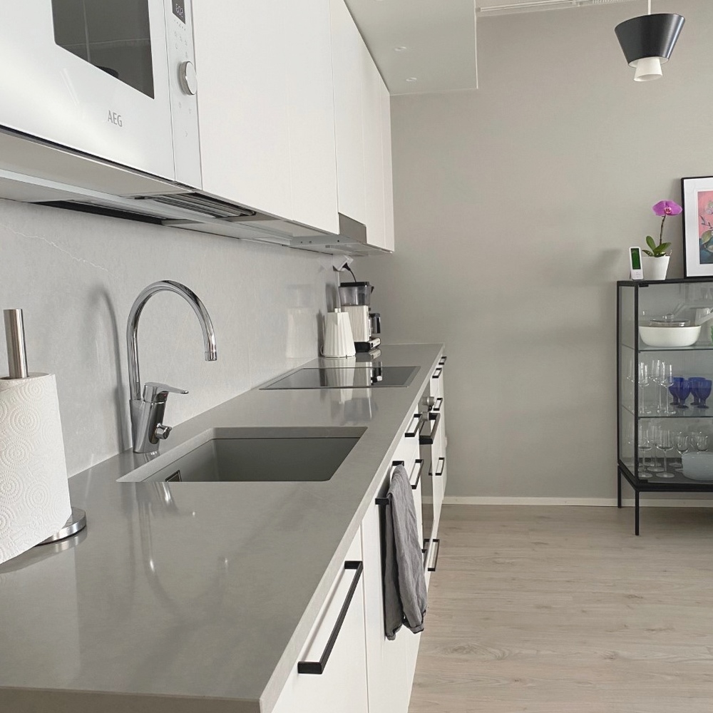 Eternal Serena från Silestone av Cosentino erbjuder en raffinerad, mjuk grå yta med delikata ådringar som tillför djup och textur.