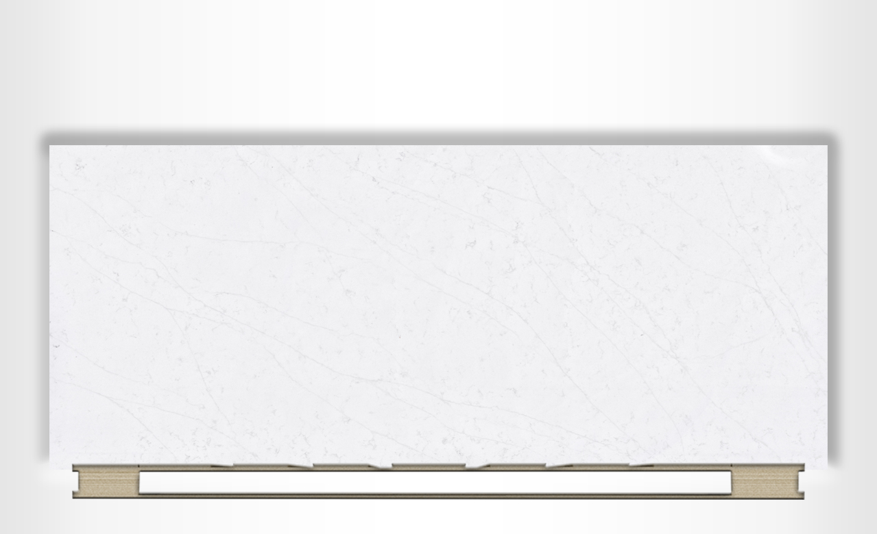 Den polerade ytan framhäver stenens intrikata detaljer och skapar en tidlös och lyxig känsla för vilket kök eller badrum som helst. Dess rena och eleganta utseende gör den till ett idealiskt val för dem som söker en klassisk och exklusiv design med kvartsens hållbarhet och låga underhåll.
