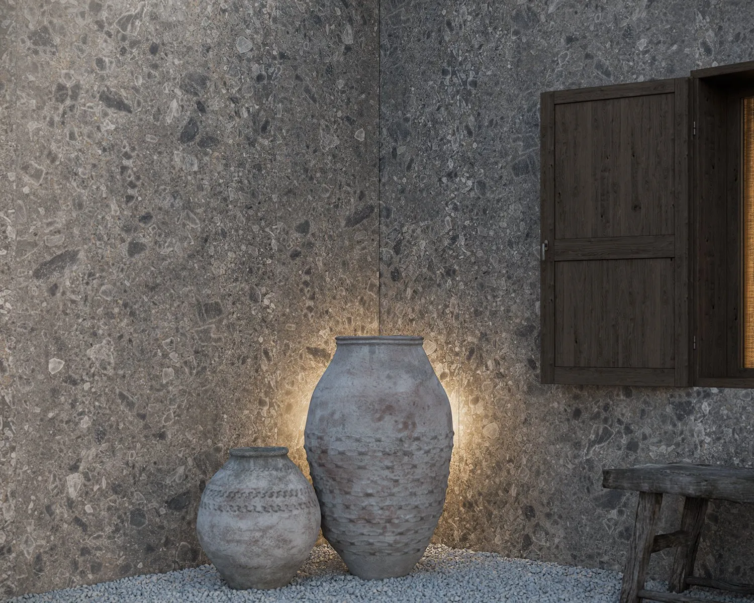 Dess matta finish framhäver det naturliga stenutseendet samtidigt som den bibehåller Dektons höga motståndskraft mot repor och fläckar. Den spräckliga designen hos GK07 Ceppo är perfekt för att skapa iögonfallande ytor som smälter sömlöst in i en mängd olika stilar.