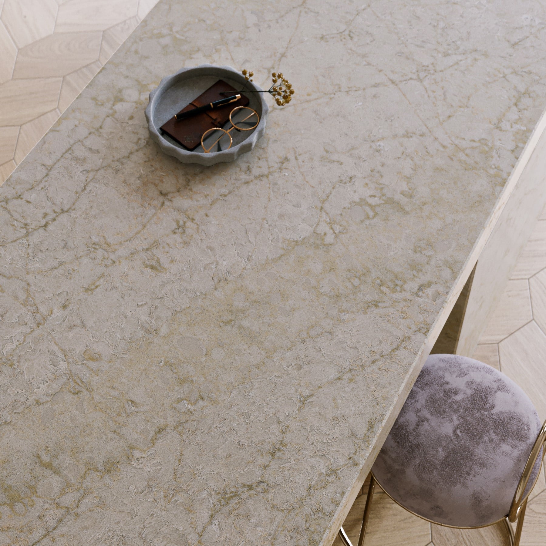 Technistone Glencoe erbjuder en varm, mjuk grå ton med finådrade mönster som påminner om den naturliga skönheten hos sten.