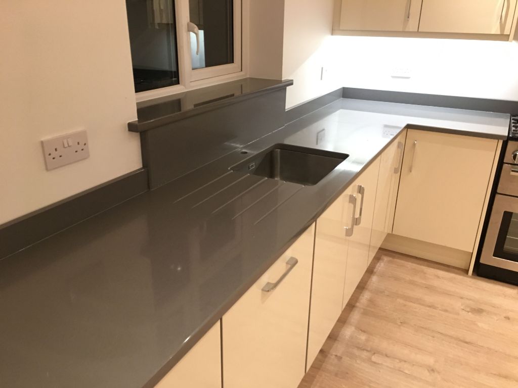Gobi Grey är en urbanistisk grå kvartssort av Technistone som har ljusgråa prickar.