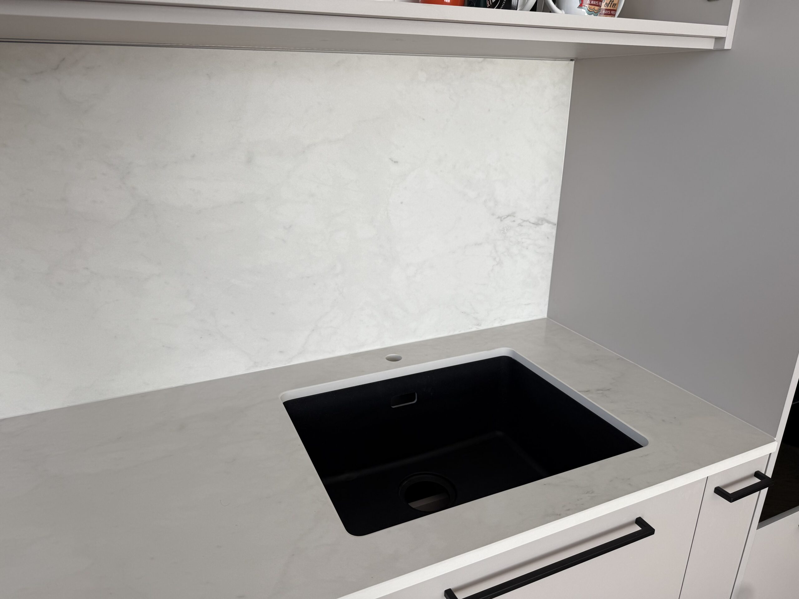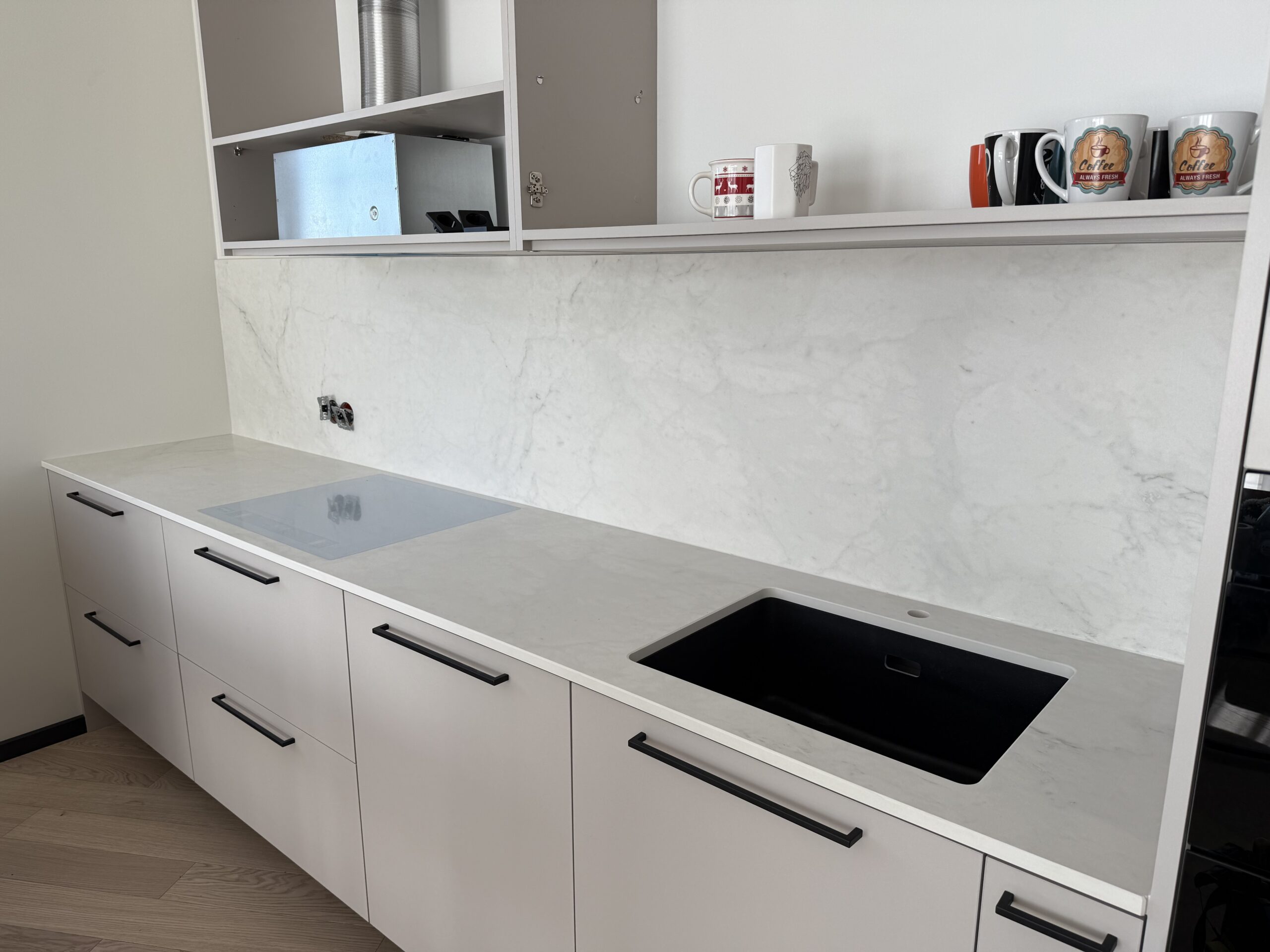 Keramiken finns i 12 mm och 20 mm tjocklek och är tålig mot repor, fläckar och värme – idealisk för bänkskivor och väggbeklädnad.