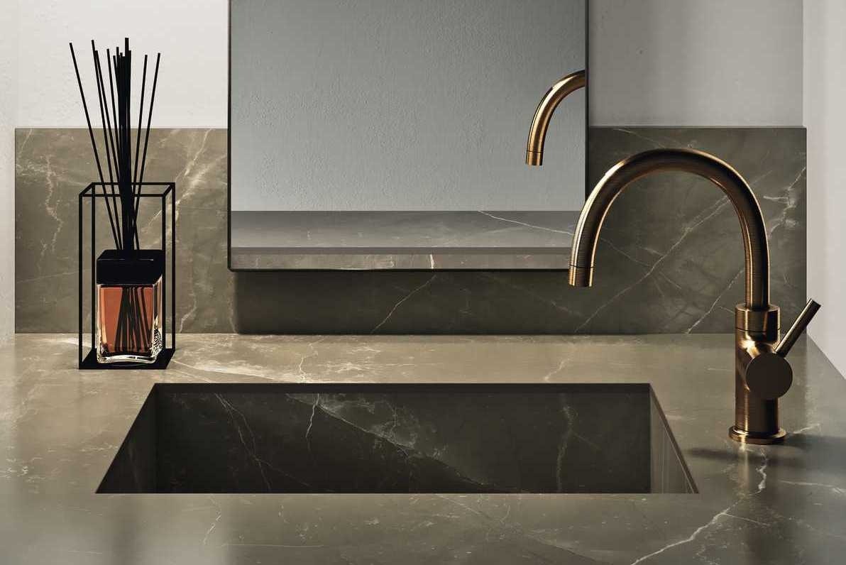 Marazzi Imperiale förkroppsligar lyx med sina rika bruna toner och mjuka ådringar.
