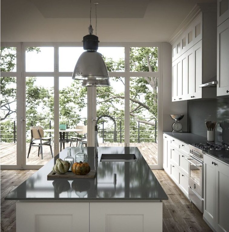 Marengo kvartsbänkskiva har djupa koltoner med subtila ådringar som efterliknar utseendet av naturlig skiffer.