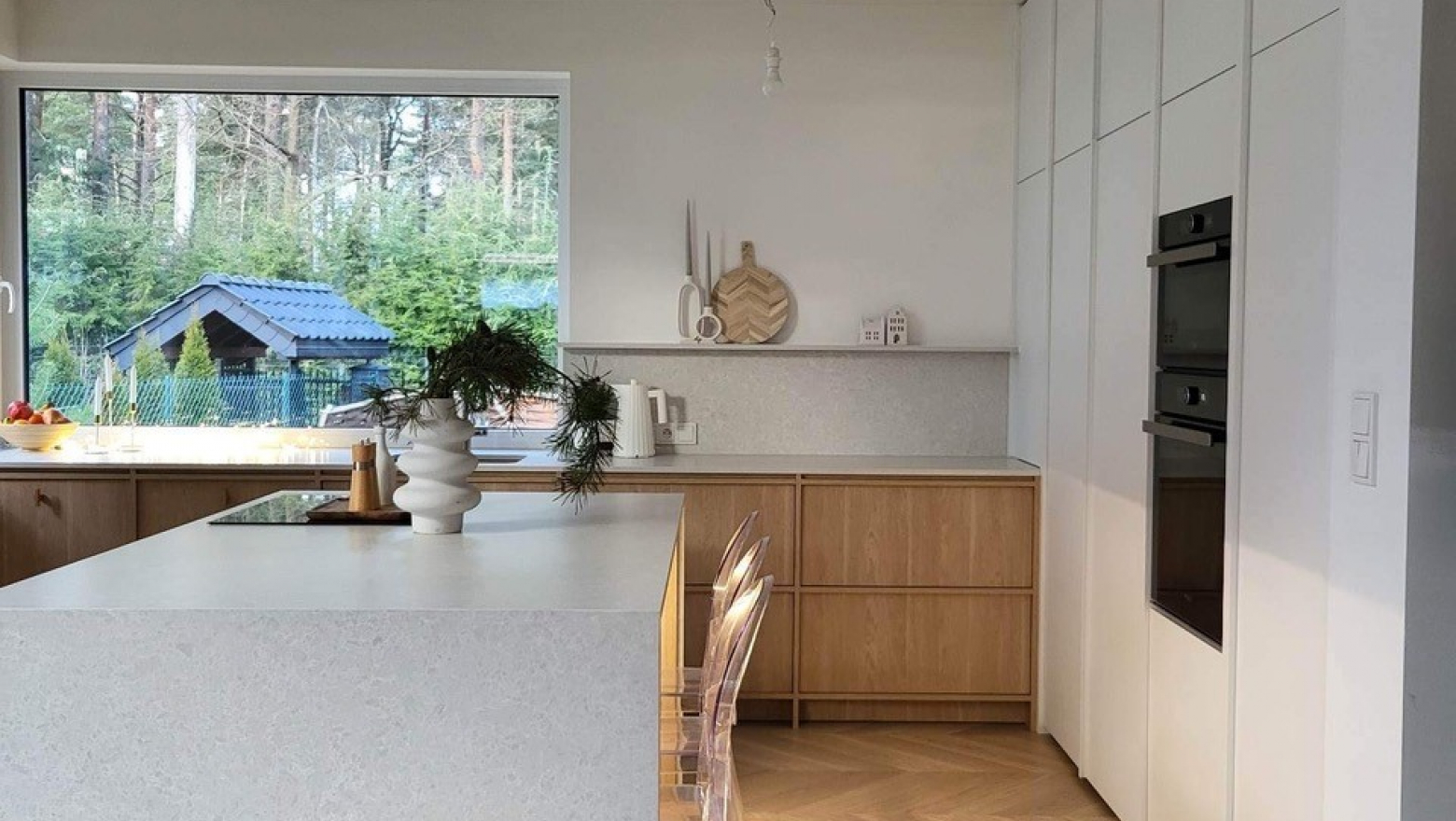 Noble Quartzite smälter sömlöst samman med naturliga material som trä och passar vackert med metalliska tillbehör.