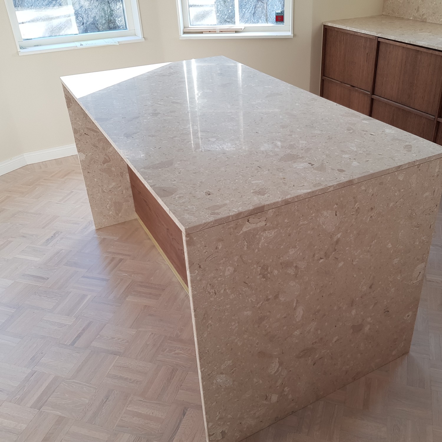 Terrazzo Perlato Royal är tillgänglig i tjocklekarna 20mm och 30mm och passar både för kök, badrum, fönsterbrädor, golv och väggar.