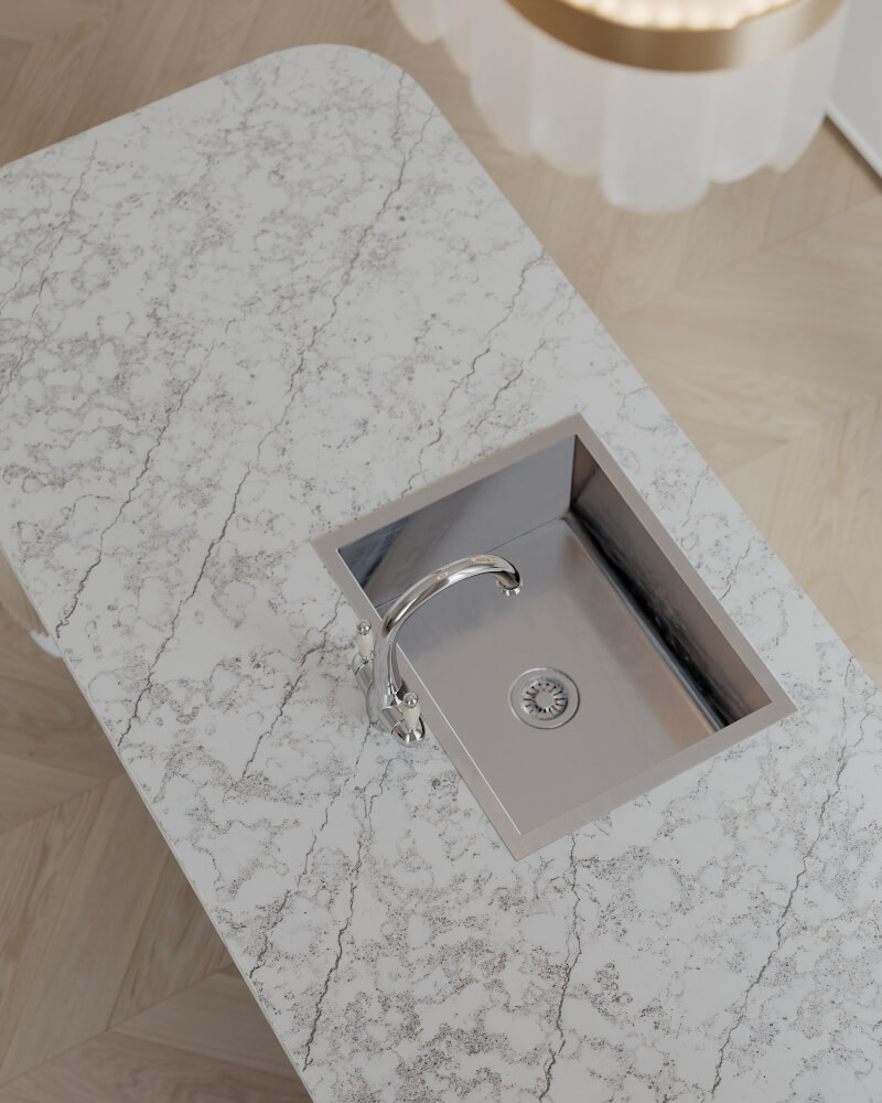Romano Ricco från Technistone bjuder på vacker rörelse och elegans med sina rika ådringar och krämiga nyanser. Med sin polerade yta och exceptionella hållbarhet är detta en kvartssten som passar både traditionella och moderna hem.