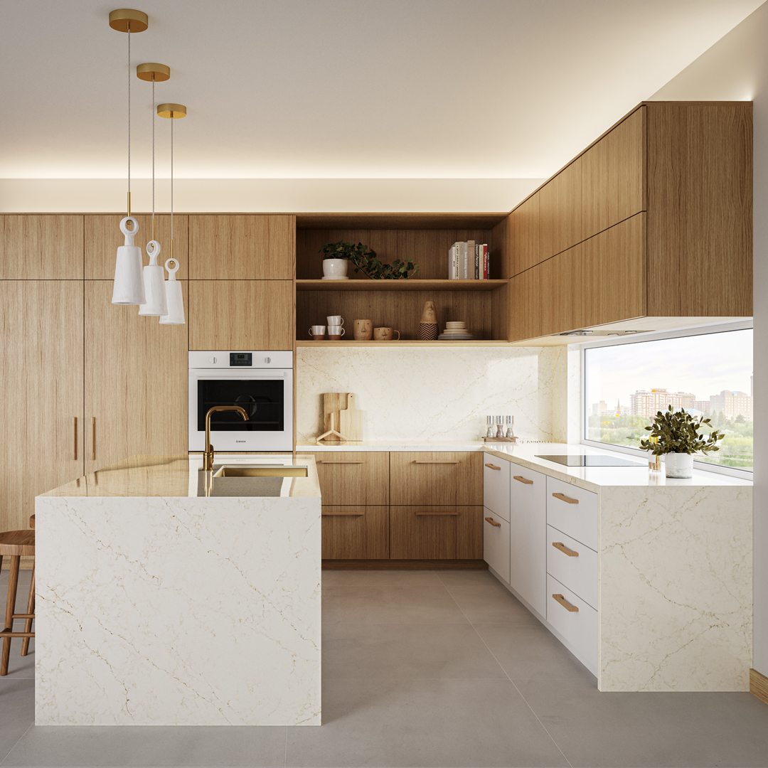 Med en tjocklek på 20mm är denna kvarts mycket slitstark, icke-porös och motståndskraftig mot fläckar, repor och värme. Den kombinerar estetik med hållbarhet och är ett praktiskt men stilfullt val.