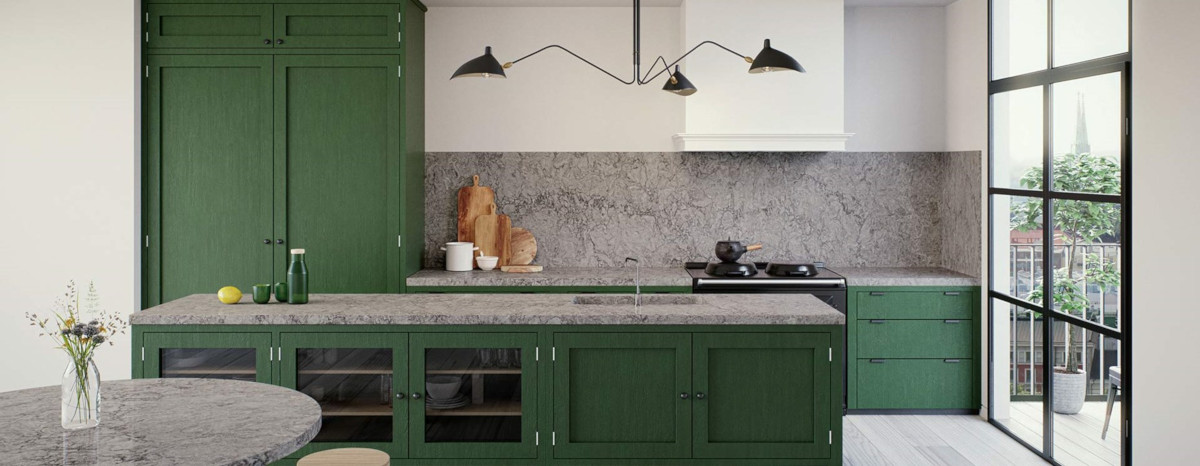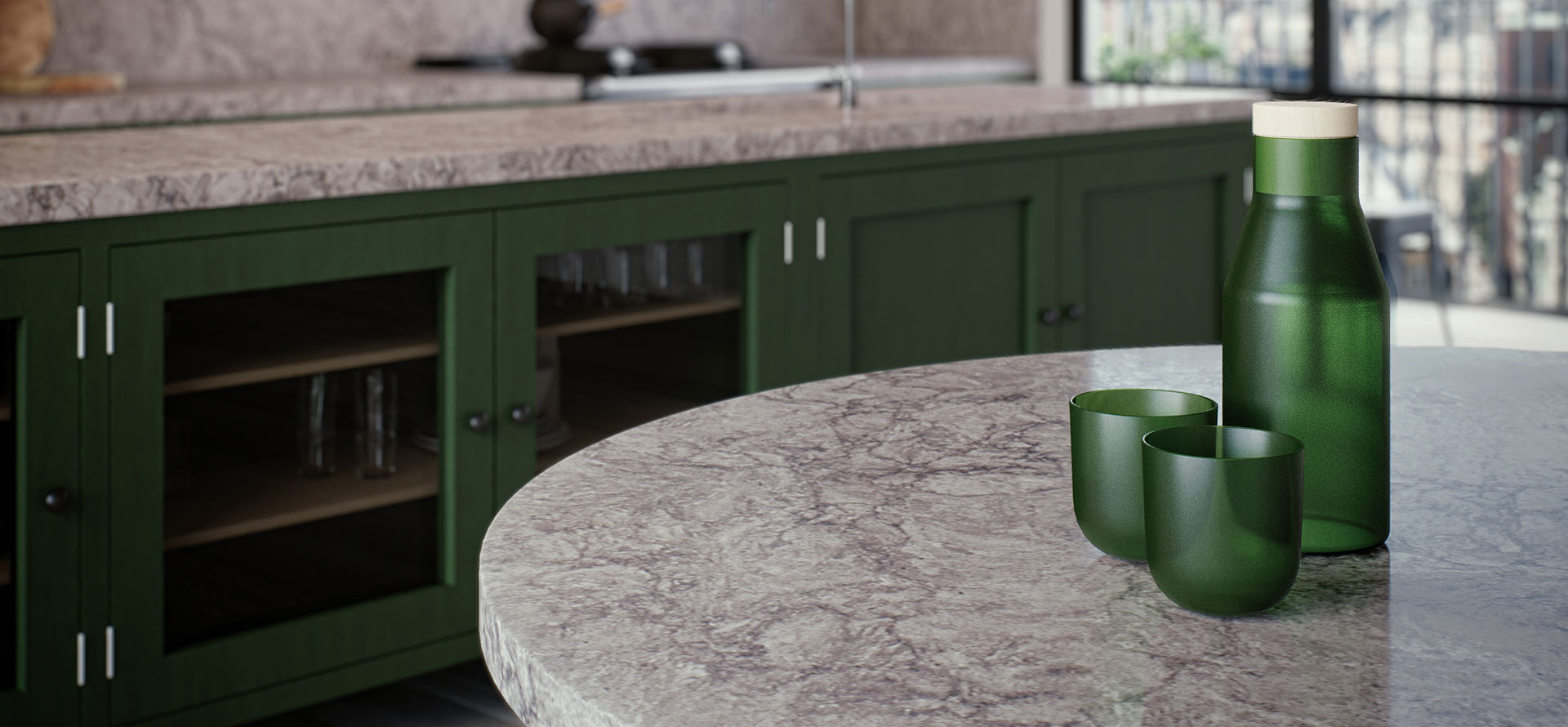 Turbine Grey är en ”modern granit” med kvarts starka egenskaper, som har grå och mörkgrå ådringar av varierande intensitet samt vita mönster – allt i sin helhet ger en verkligen fascinerande sten. Tack vare sin nyans passar den utmärkt till både moderna såväl som traditionella kök, men även för en sommarstuga där den är omgiven av naturligt trä, färgade dörrar och en lantlig miljö.