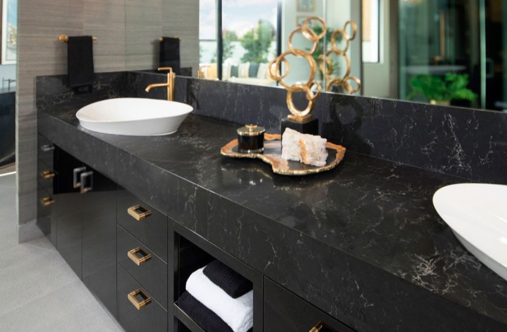 Caesarstones kvartssorter har utvecklats som ett beständigt alternativ till naturliga stenslag och har ett större beständighet mot repor och fläckar, samt är de oporösa. Fördelen med mörka kvartssorter är att eventuella fläckar är mindre synliga på dem.