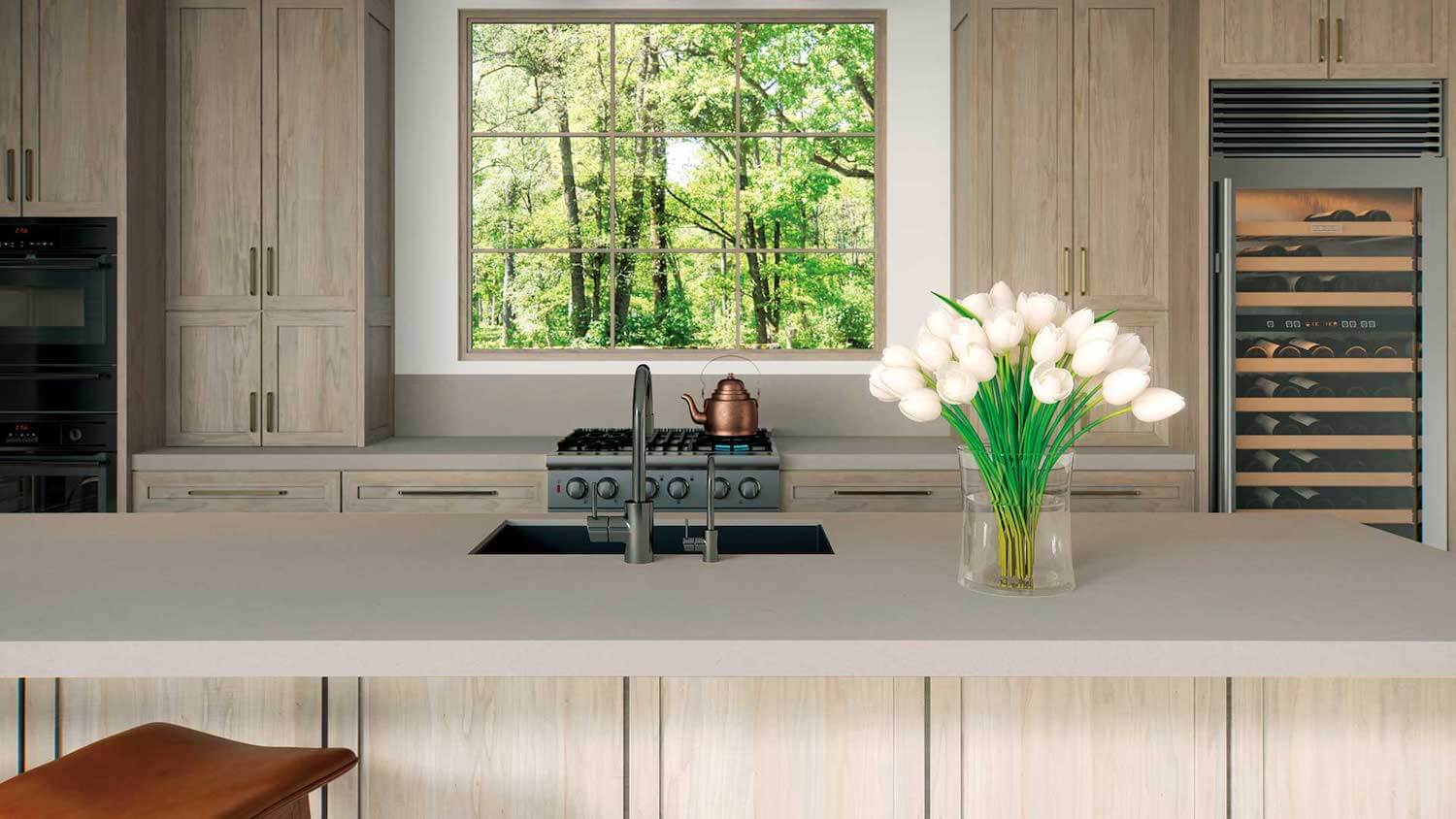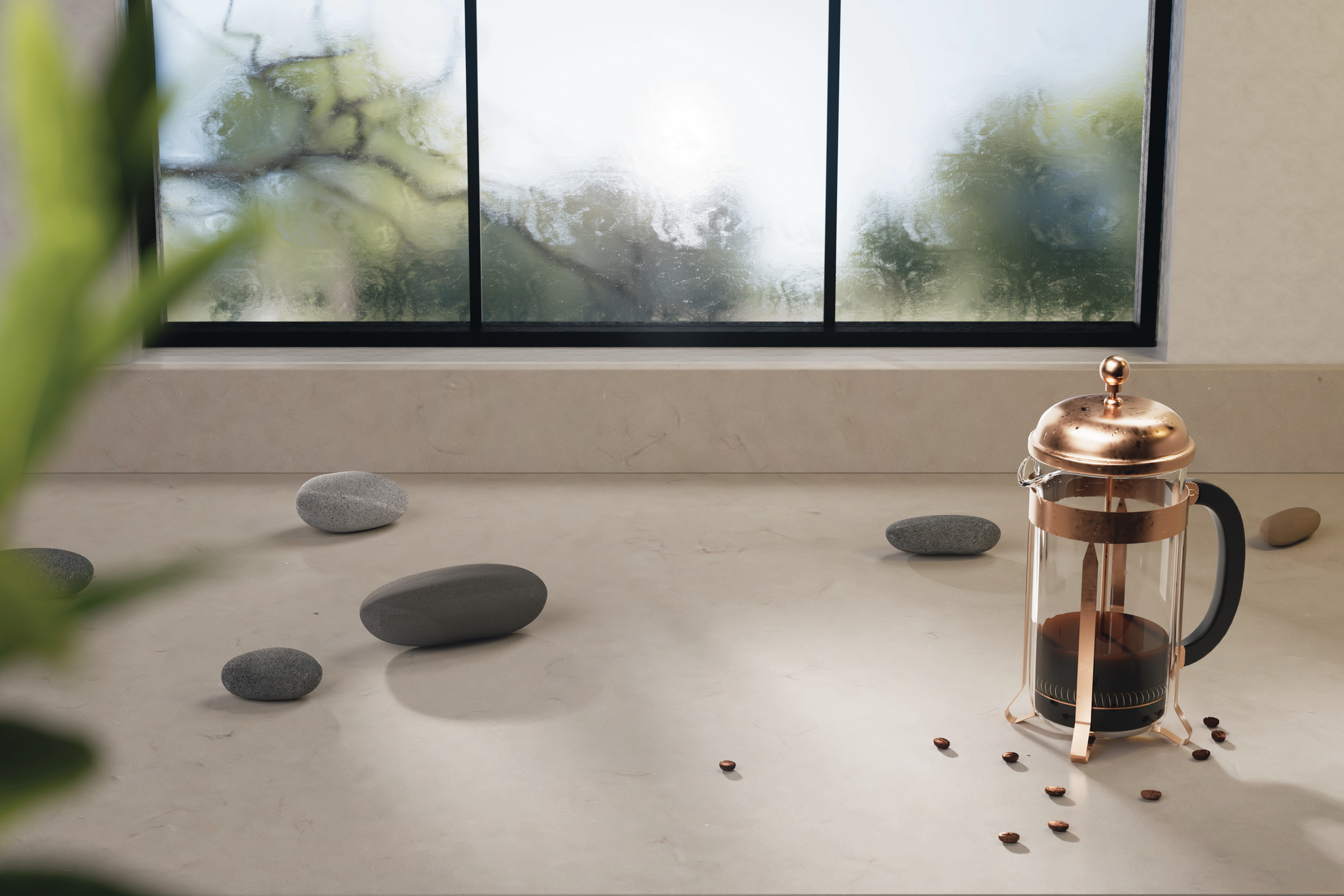 Wydingo är en kvarts av Caesarstone med en varm gråbeige nyans vars yta präglas av nästintill osynliga former, som framhävs av den slipade ytbehandlingen.