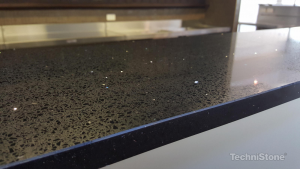 Starlight Black av Technistone har vita ljusreflekterande prickar och har inspirerats av den i Sverige oerhört populära granitsorten Star Galaxy.